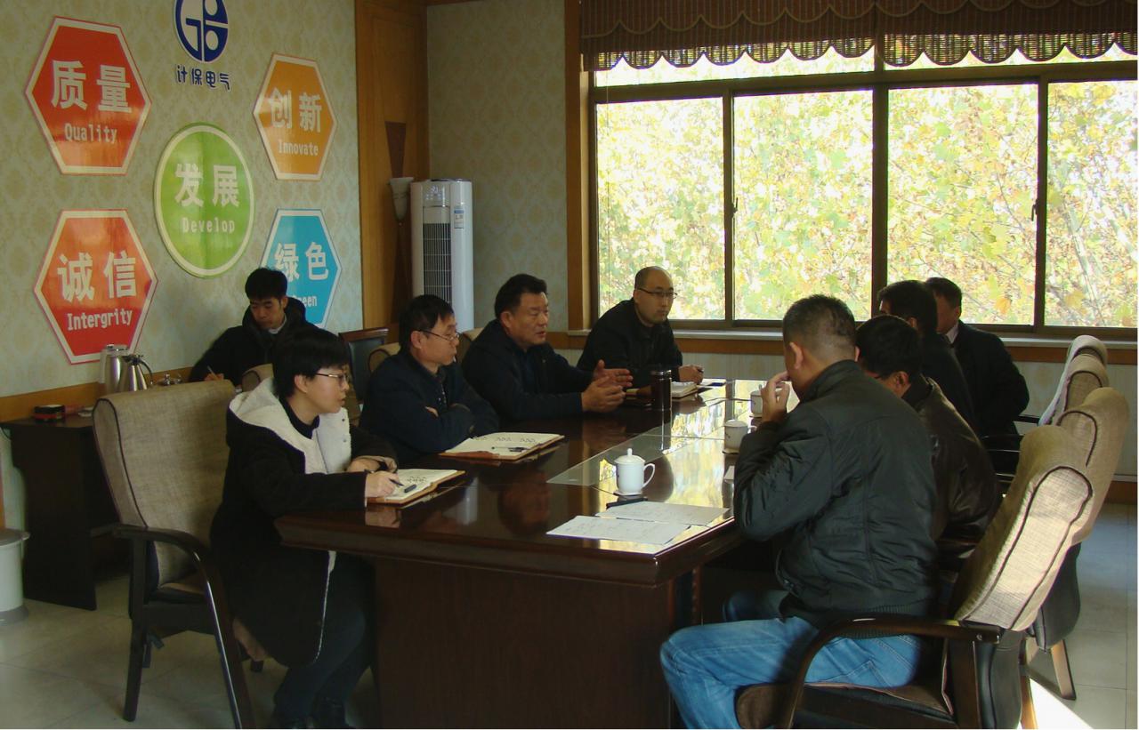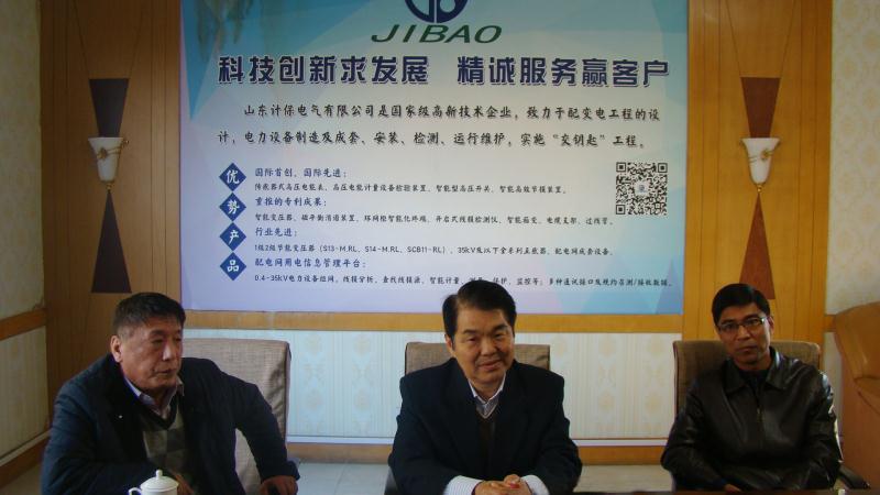 2019年12月4日,淄博熱電集團公司副董事長宋魯迅、副總經理張勇軍、副總工程師薛勝、計量室主任錢成一行到山東計保電氣有限公司考察,并與公司董事長榮博及相關技術人員座談。