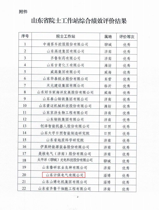 山東計保電氣有限公司院士工作站因成績突出,被山東省科學技術廳評為山東省優秀院士工作站。淄博市僅有三家工作站獲此榮譽。